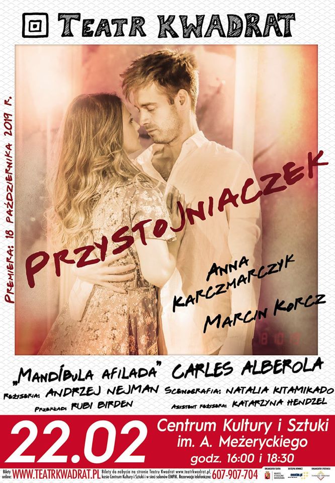 W sobotę, 22 lutego o godz. 16:00 i 18:30 na deskach Sceny Teatralnej Miasta Siedlce wystawiony zostanie spektakl Teatru Kwadrat "Przystojniaczek". W sztuce wyreżyserowanej przez Andrzeja Nejmana wystąpią: Anna Karczmarczyk i Marcin Korcz.
