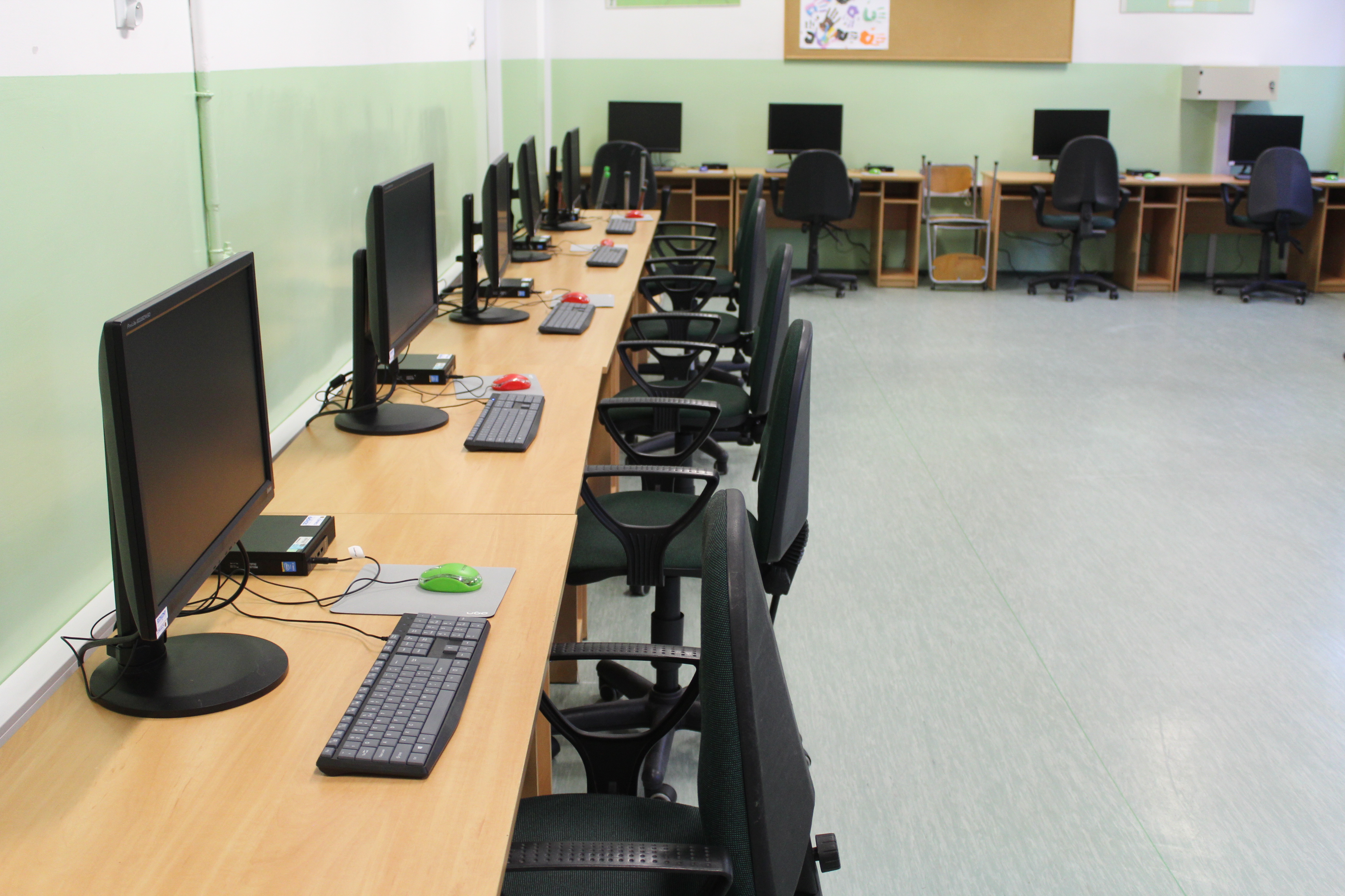 Pracownia informatyczna przeznaczona jest dla uczniów wszystkich klas podstawówki od 1 do 8. W grupie wiekowej klas 1 – 3 zajęcia z informatyki są przeprowadzane z całymi klasami (około 25 osób), w klasach 4 – 8 w grupach do 15 osób.