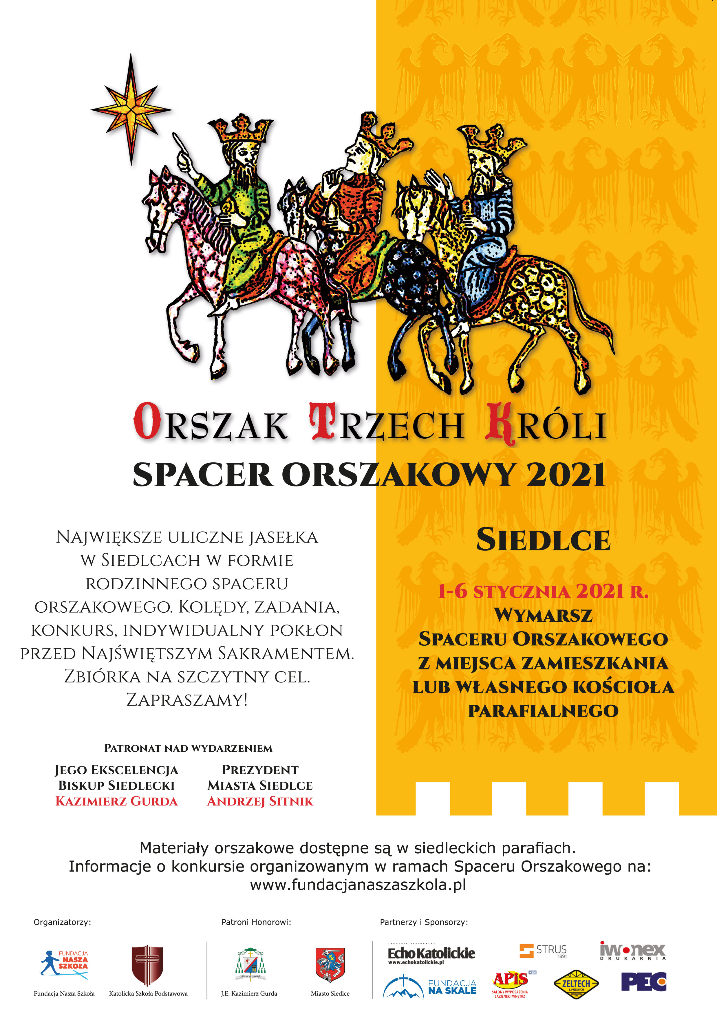 - Spacer Orszakowy dedykowany jest dla Rodzin, jako forma rodzinnej gry terenowej polegająca na przejściu trasy dotychczasowego Orszaku ulicami Siedlec w celu przeżycia wydarzenia w nowy bardziej osobisty sposób.