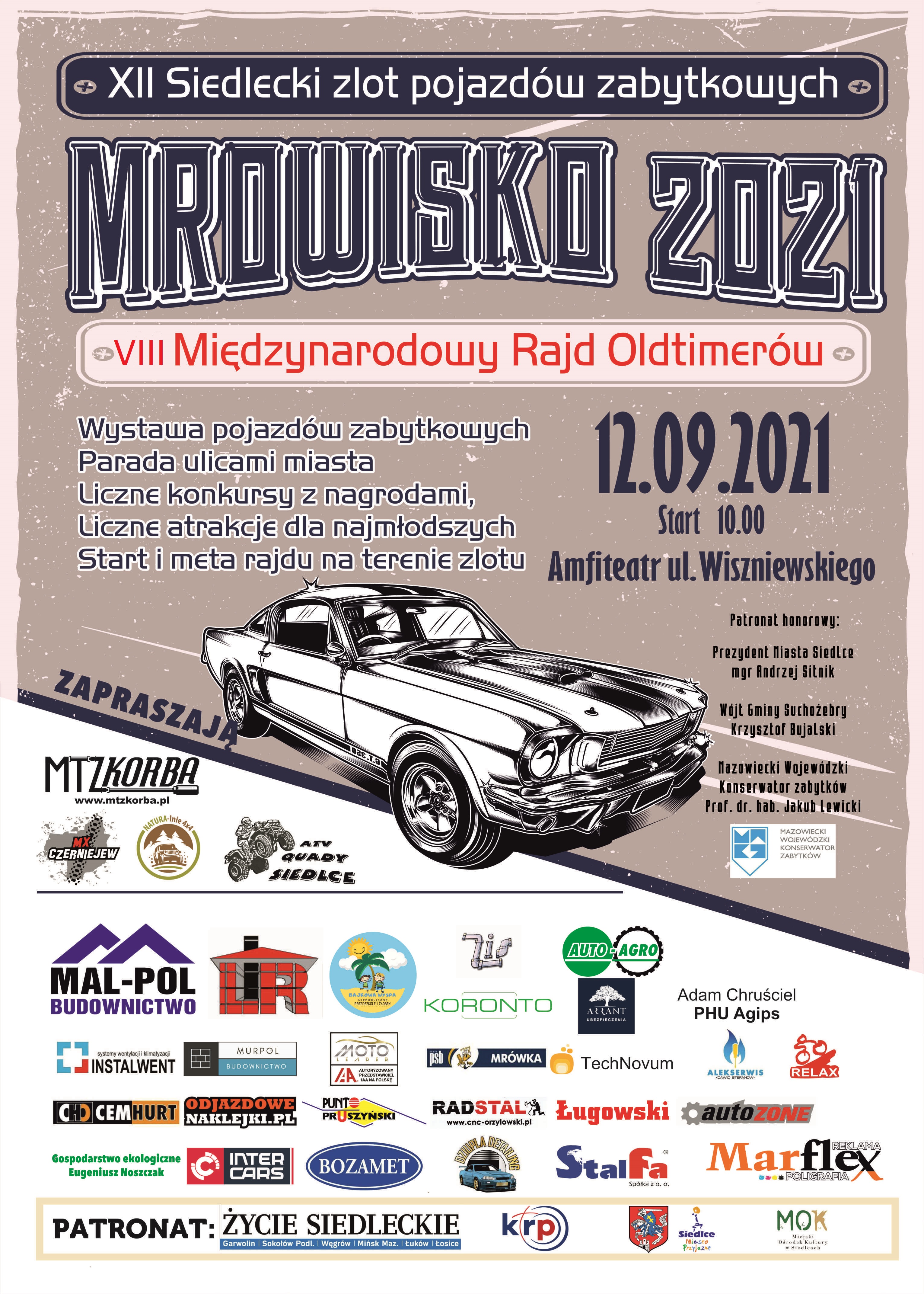Rekordowa frekwencja, zarówno wśród uczestników, jak i publiczności oraz prośby zgłaszane organizatorom skłoniły ich do pójścia za ciosem – dlatego już w najbliższą niedzielę 12.09 będziemy mogli podziwiać około 300 zabytkowych pojazdów z całego regionu na XII Siedleckim Zlocie Pojazdów Zabytkowych Mrowisko 2012. W programie jak zwykle mnóstwo atrakcji, konkursy i koncerty. Organizatorzy zapraszają na Zlot właścicieli wszystkich pojazdów wyprodukowanych do 1990 roku włącznie. Uczestnicy nie muszą dokonywać żadnych wcześniejszych zgłoszeń, a udział w Zlocie jest bezpłatny. Wystarczy przyjechać swoim pojazdem na teren przy siedleckim amfiteatrze, na ul. Wiszniewskiego.