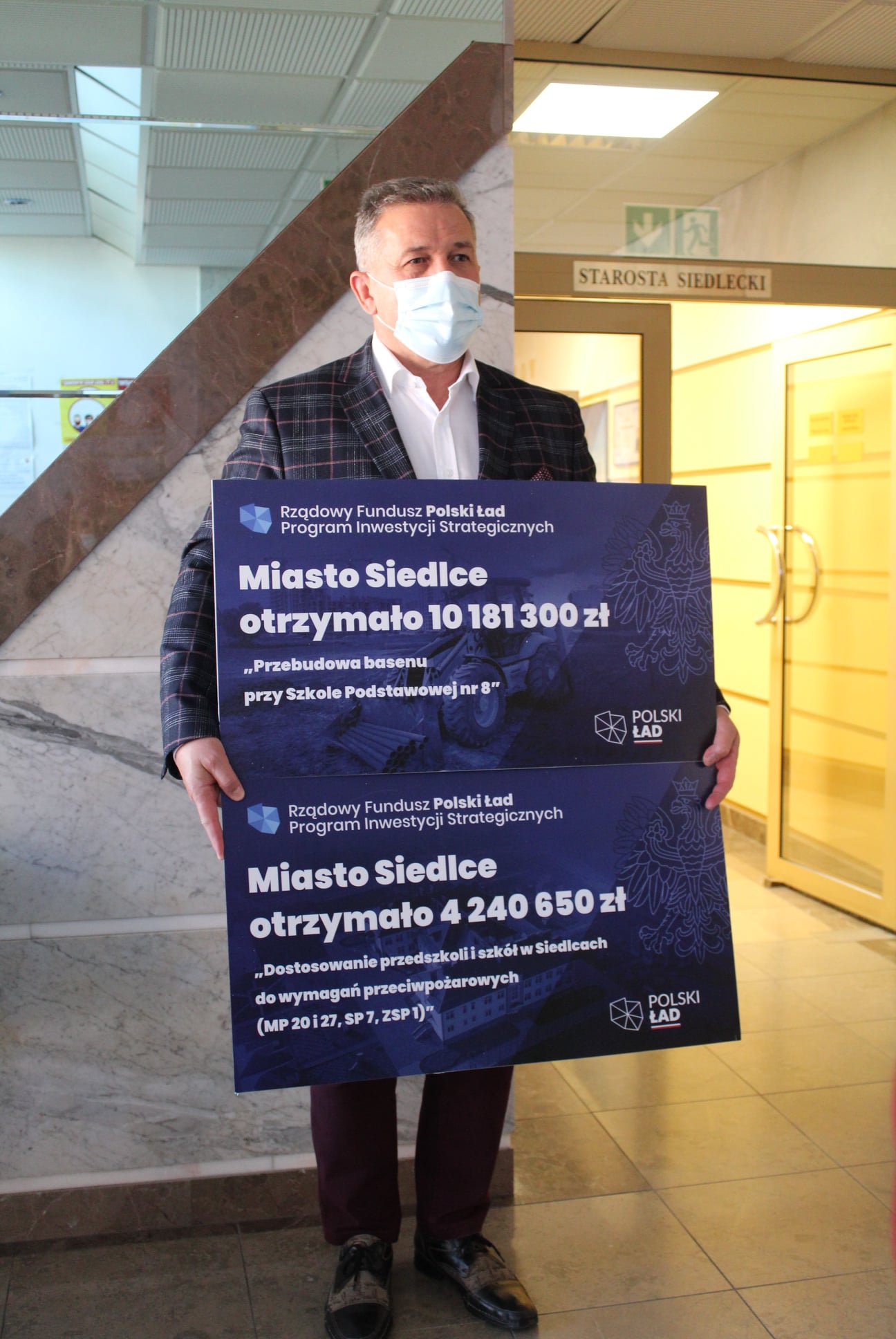 Z Rządowego Funduszu Polski Ład Miasto Siedlce otrzymało wsparcie na "Przebudowę basenu przy Szkole Podstawowej nr 8 w Siedlcach" - 10 181 300,00 zł oraz "Dostosowanie przedszkoli i szkół w Siedlcach do wymagań przeciwpożarowych (MP 20 i 27, SP 7, ZSP 1)" - 4 240 650,00 zł. Trzeci ze złożonych wniosków na "Budowę ulicy Floriańskiej" nie zyskał dofinansowania.