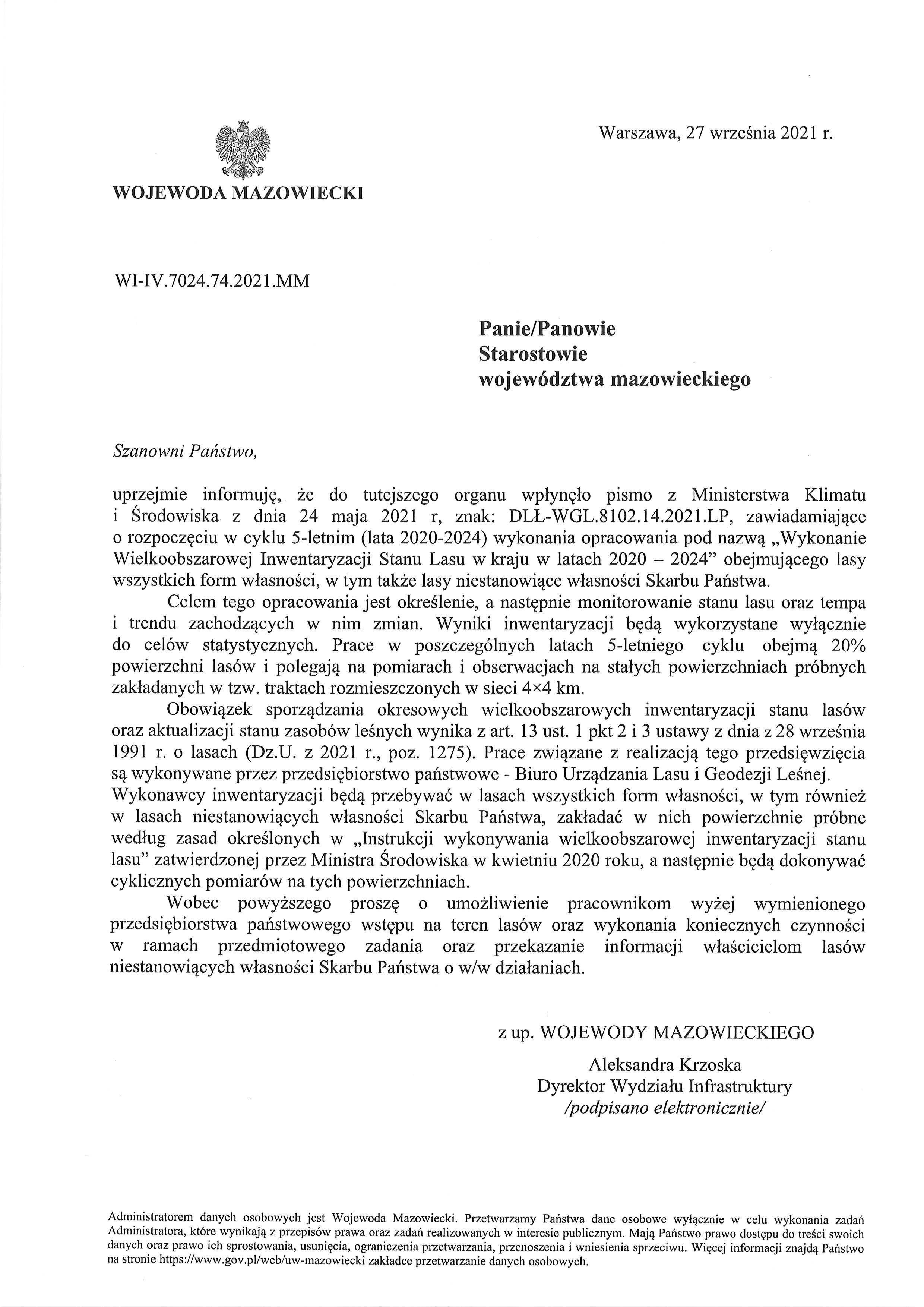 Zgodnie z art. 13a ust. 2 Ustawy o lasach w bieżącym roku w lasach wszystkich form własności, w tym także w lasach niestanowiących własności Skarbu Państwa, na terenie całego kraju, rozpoczyna się wykonanie - w cyklu 5-letnim (lata 2020-2024) - opracowania pod nazwą „Wykonanie Wielkoobszarowej Inwentaryzacji Stanu Lasu w kraju w latach 2020-2024”.