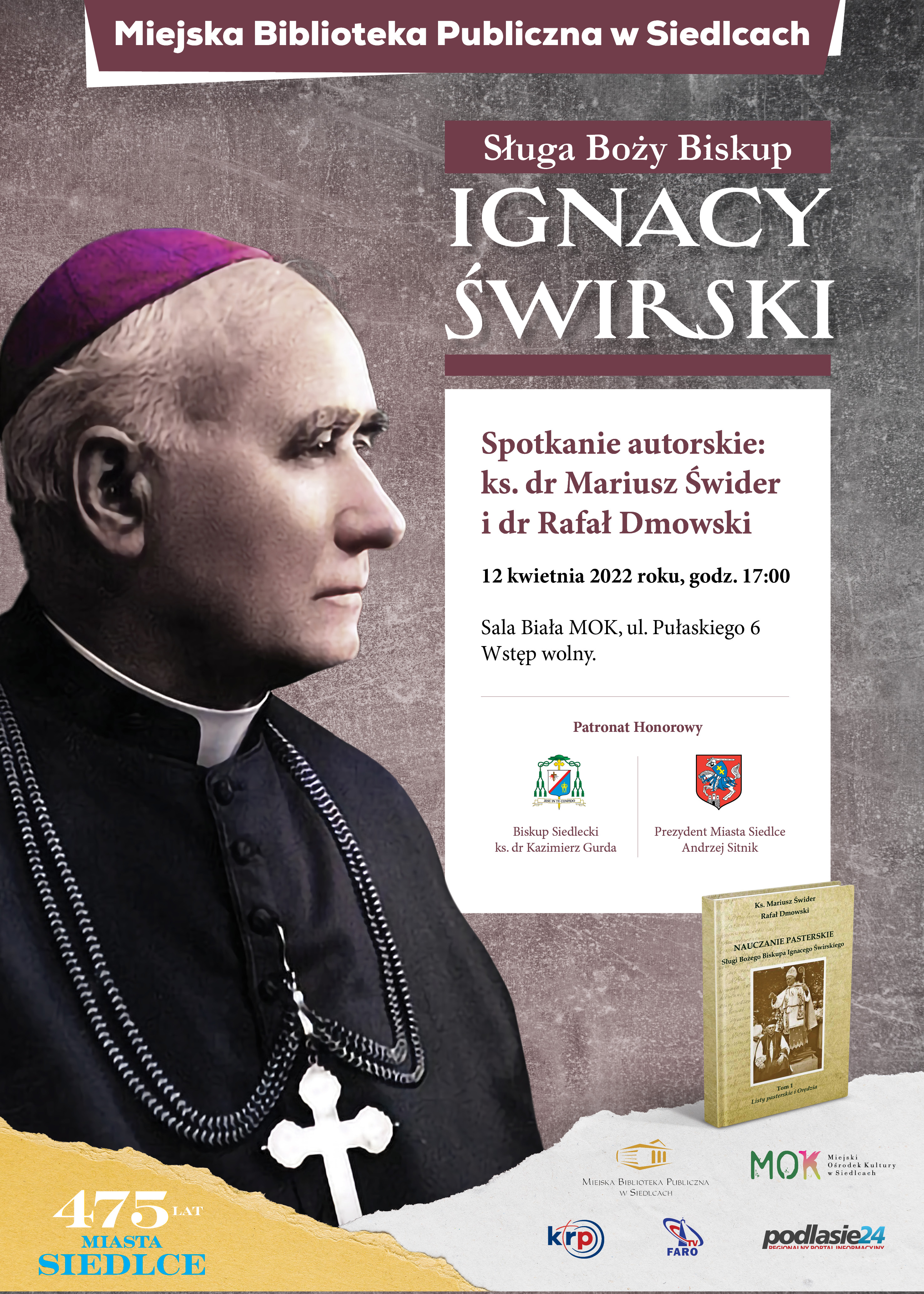 Miejska Biblioteka Publiczna w Siedlcach zaprasza na promocję książki autorstwa ks dra Mariusza Świdra i dra Rafała Dmowskiego pt. „Nauczanie pasterskie Sługi Bożego Biskupa Ignacego Świrskiego, tom 1. Listy pasterskie i Orędzia"