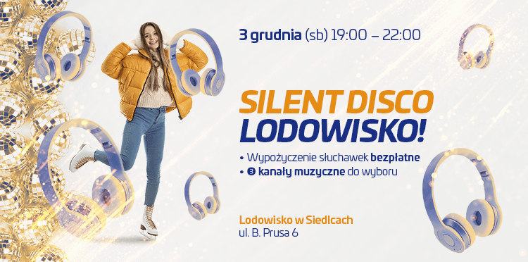 W sobotę o godz. 19:00 odbędzie się Silent Disco Lodowisko, czyli wyjątkowa dyskoteka na łyżwach w słuchawkach. Uczestnicy otrzymają na czas eventu kolorowe, świecące słuchawki bezprzewodowe. Każdy w dowolnej chwili może zmienić kanał muzyczny spośród trzech dostępnych i regulować głośność słuchawek.