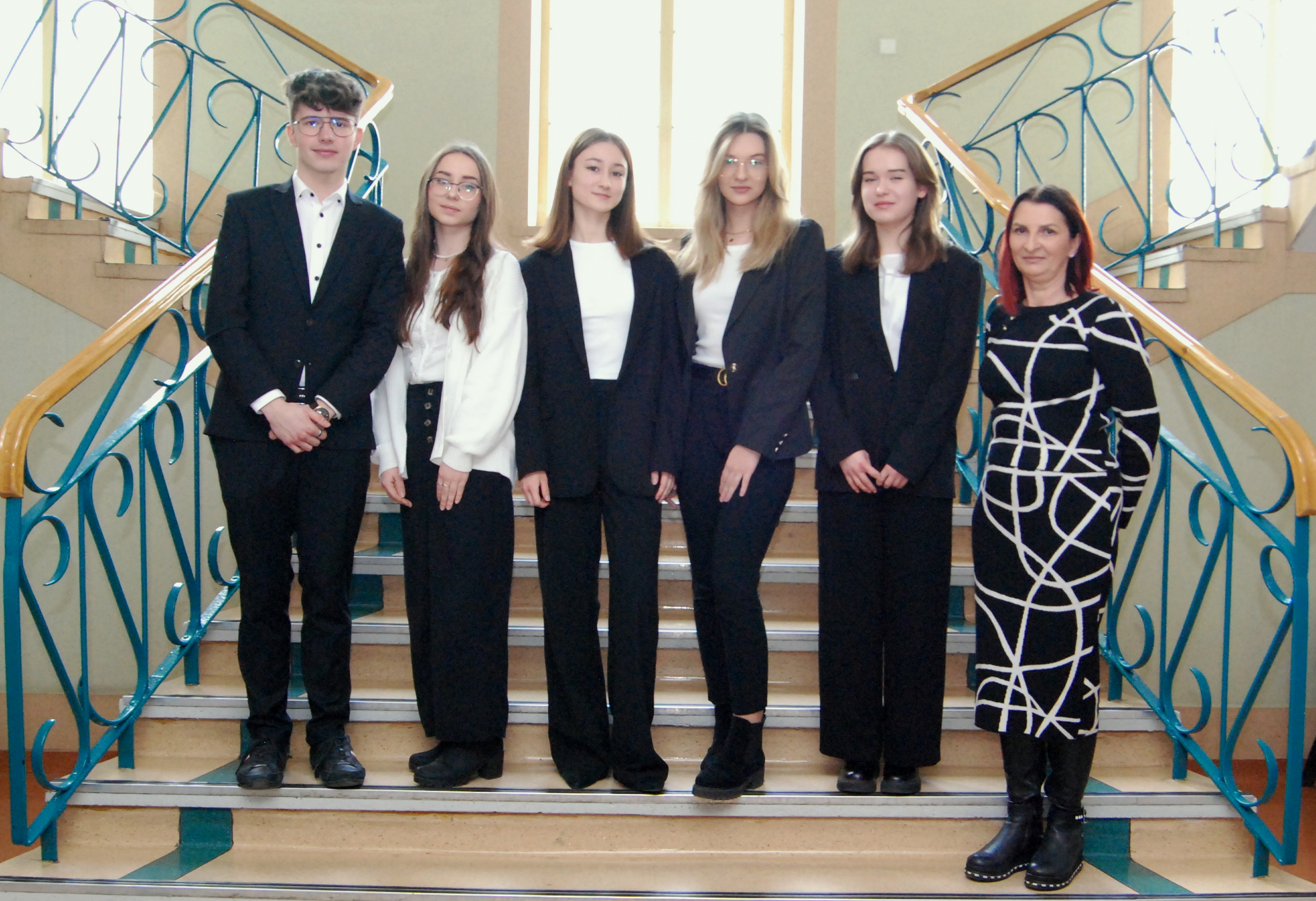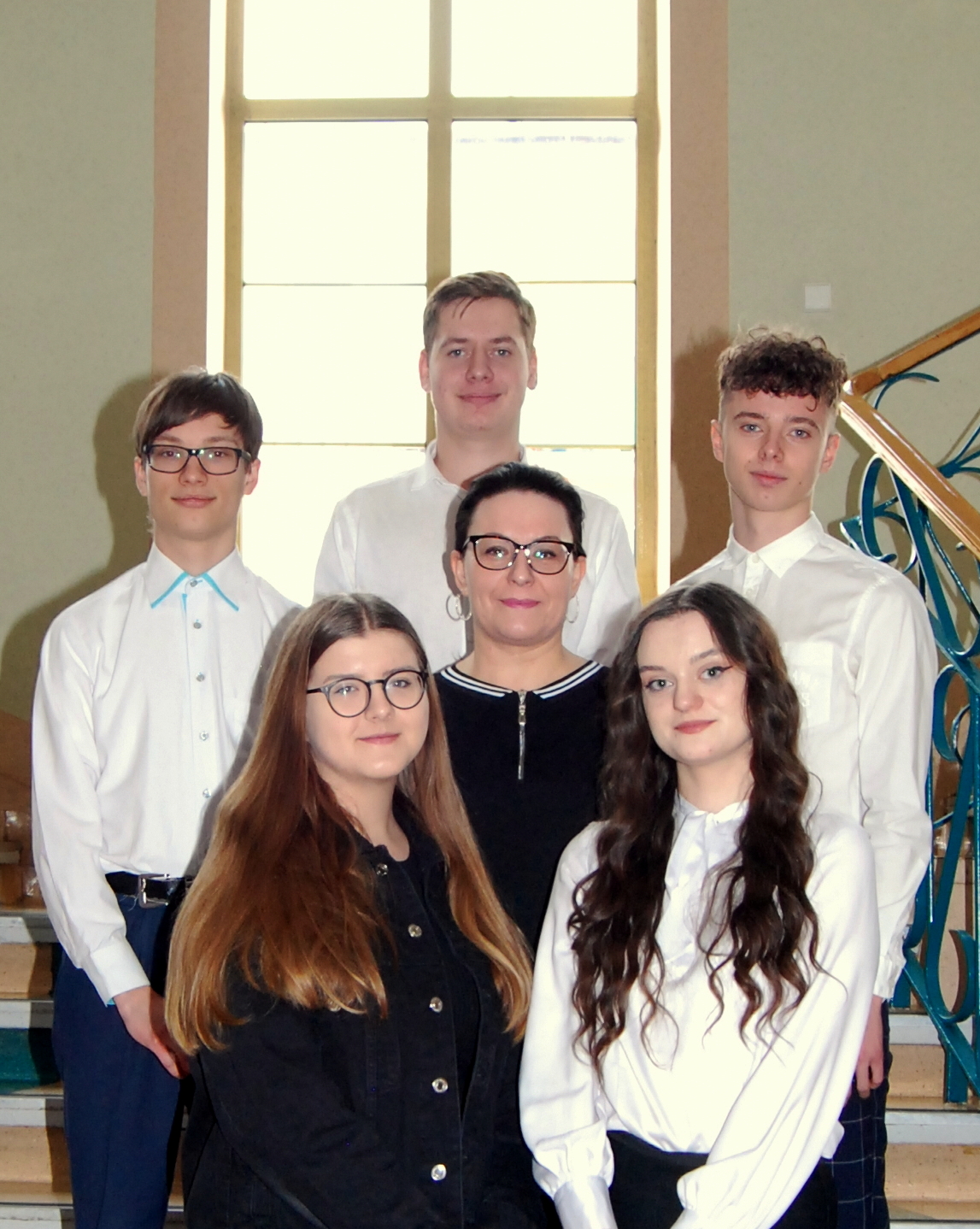 Izabela Brodzik, Kamil Kwiatek, Adrianna Wróbel, Natalia Pluta, Zuzanna Baszkiewicz; opiekun- Lidia Kadej.