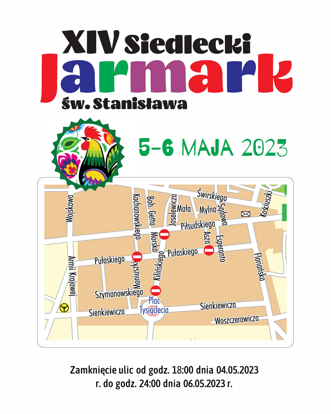 Oficjalnie otwarcie Jarmarku odbędzie się 5 maja o godz. 11:00 na scenie na skrzyżowaniu ulic Pułaskiego i Kilińskiego.