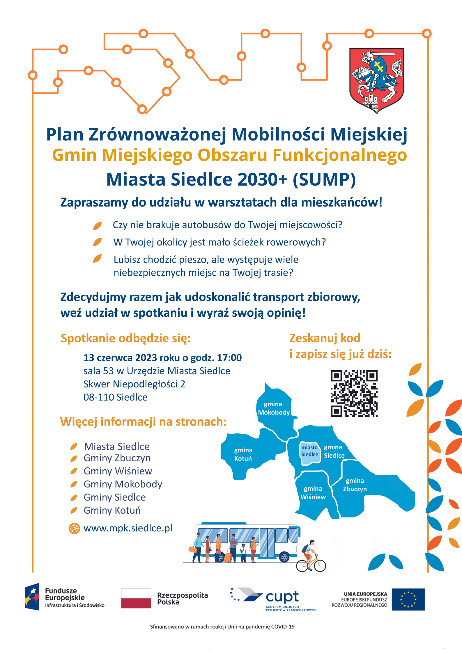 Weź udział w warsztatach w ramach prac nad Planem Zrównoważonej Mobilności Miejskiej Gmin Miejskiego Obszaru Funkcjonalnego Miasta Siedlce 2030+!