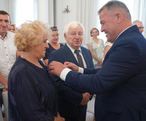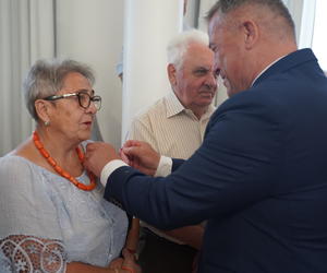 - Drodzy Jubilaci, w dowód Waszego społecznego uznania dla trwałości małżeństwa i rodziny, przyznajemy Państwu Medale za Długoletnie Pożycie Małżeńskie. Gratuluję Państwu tego wyróżnienia, jak też tego pięknego jubileuszu i życzę wielu kolejnych lat przeżytych w zdrowiu, miłości i wzajemnym szacunku, życzę radości z każdego kolejnego dnia i wszelkiej pomyślności, byśmy mogli świętować kolejne jubileusze. Kochajcie się, bo jak powiedział Ernst Penzoldt "Ludzie, których kocha się z całego serca, nigdy się nie starzeją".