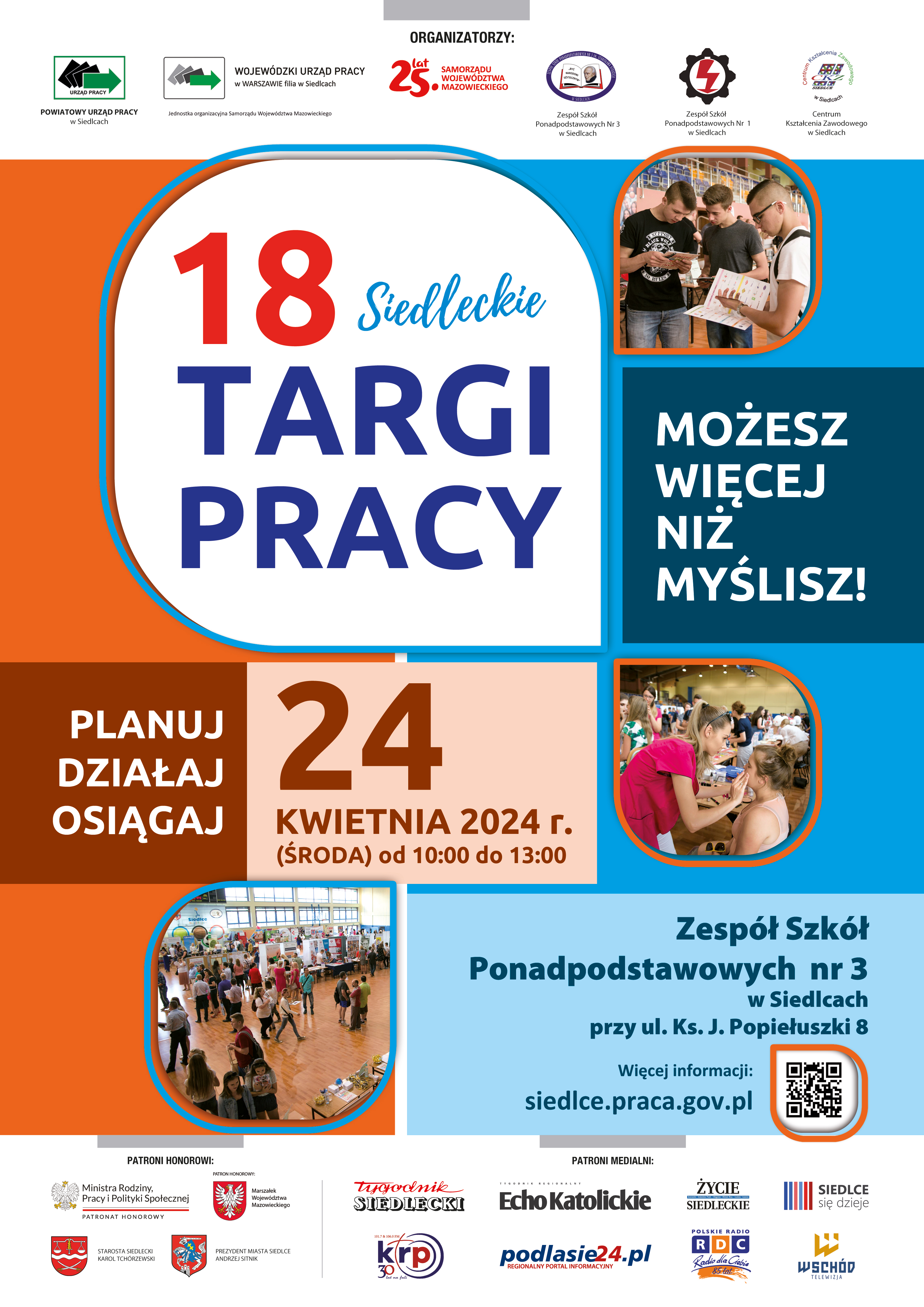 Targi odbędą się 24 kwietnia 2024 r. w hali sportowej Zespołu Szkół Ponadpodstawowych nr 3 w Siedlcach wgodzinach 10.00-13.00.