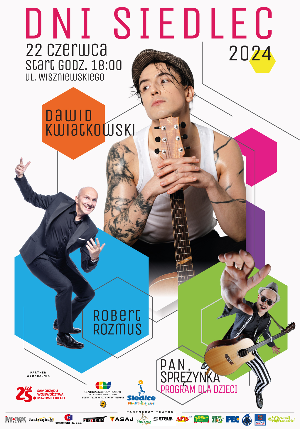 Zapraszamy na koncerty z okazji Dni Siedlec 2024. W tym roku na scenie plenerowej przy ul. Wiszniewskiego wystąpią: Pan Sprężynka, Robert Rozmus i gwiazda wieczoru Dawid Kwiatkowski.