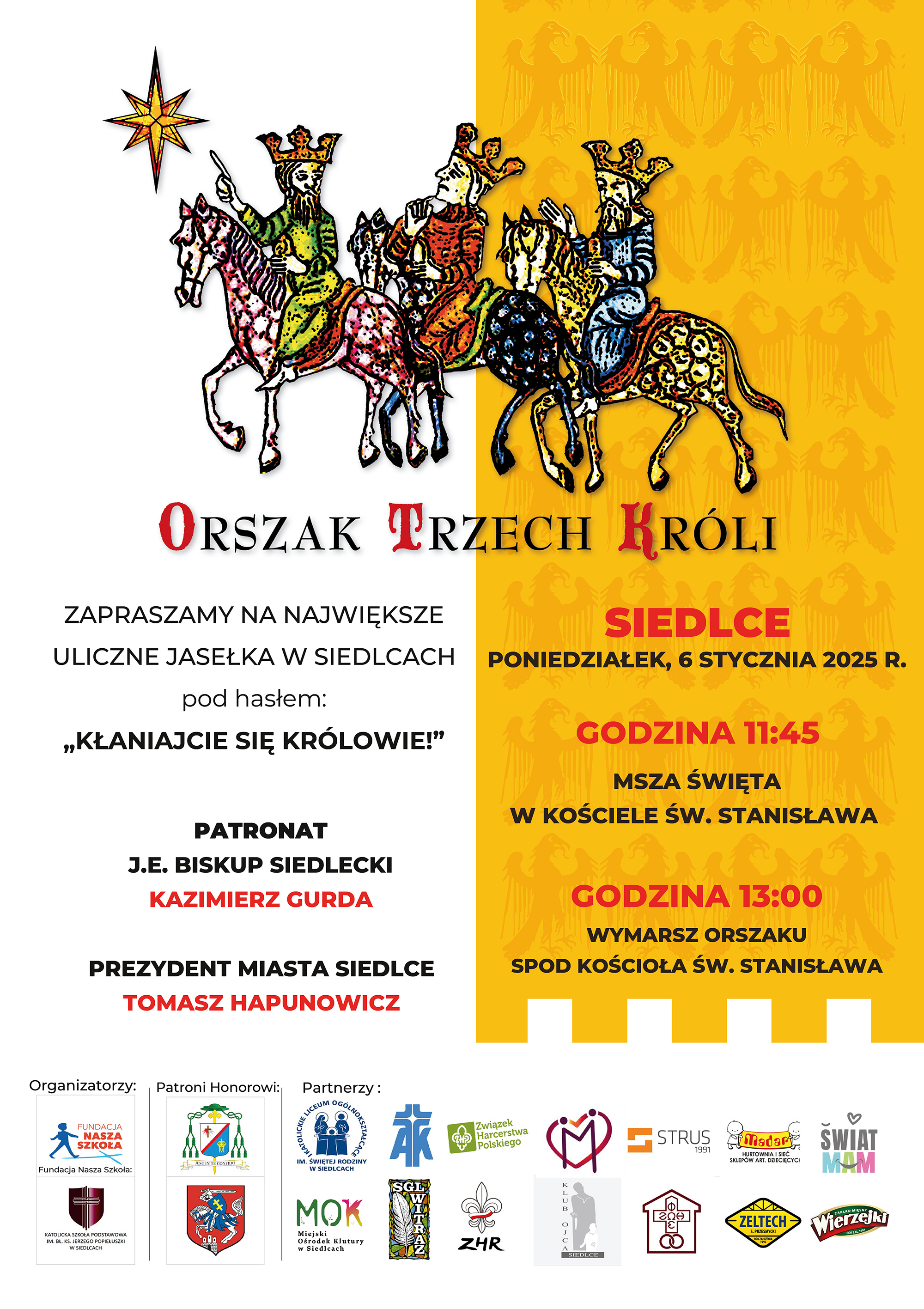 14.30 – życzenia biskupa i prezydenta Siedlec, poczęstunek i zakończenie orszaku.
