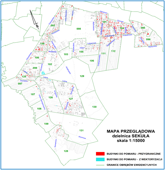 Celem tych prac jest podniesienie jakości danych poprzez aktualizację i uzupełnienie bazy danych ewidencyjnych dotyczących budynków i elementów im towarzyszących ujawnionych w bazie pozyskanych w procesie wektoryzacji, weryfikację użytków gruntowych w zakresie terenów zabudowanych jak również doprowadzenie do spójności danych opisowych i geometrycznych dotyczących budynków, konturów użytków gruntowych.