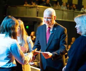 19 maja 2025 r. w Centrum Kultury i Sztuki im. Andrzeja Meżeryckiego Scena Teatralna Miasta Siedlce Prezydent Miasta Siedlce Tomasz Hapunowicz złożył gratulacje stypendystom oraz wręczył im listy gratulacyjne.