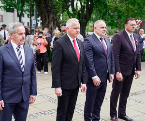 Następnie uczestnicy przemaszerowali na Skwer gen. Tadeusza Kościuszki, gdzie odbyła się główna część obchodów. Uroczystości rozpoczęto wspólnym odśpiewaniem hymnu państwowego, po czym okolicznościowe przemówienie wygłosił Prezydent Miasta Siedlce Tomasz Hapunowicz. Całość zakończyło uroczyste złożenie wieńców pod pomnikiem generała Kościuszki.