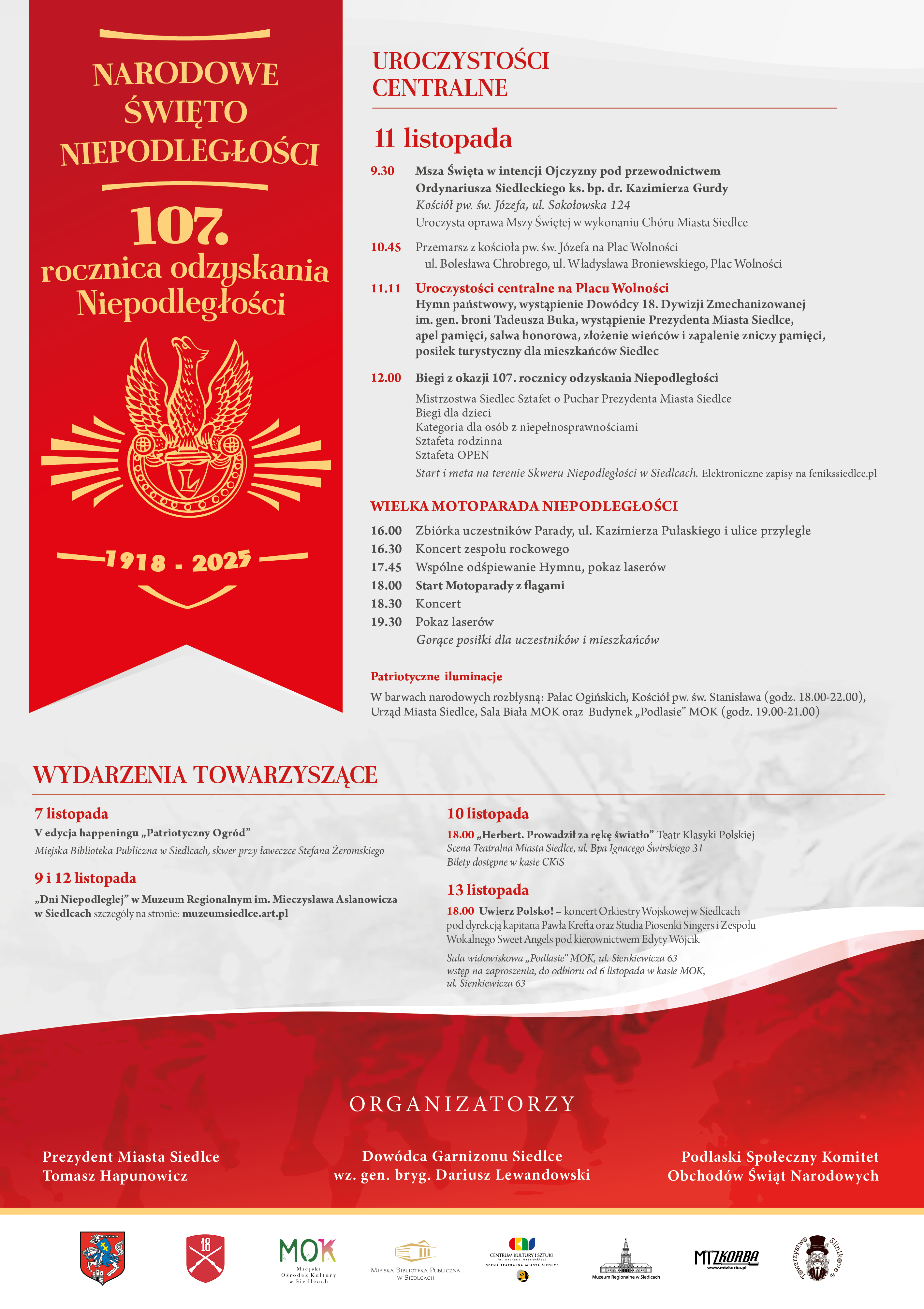 Obchody 107. rocznicy odzyskania Niepodległości w Siedlcach.
