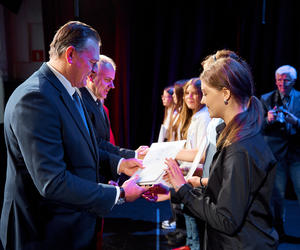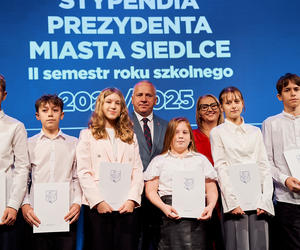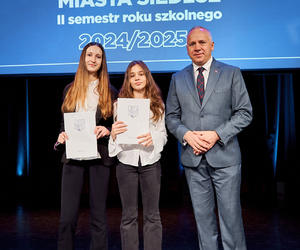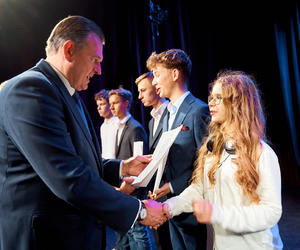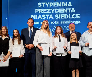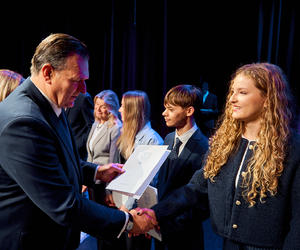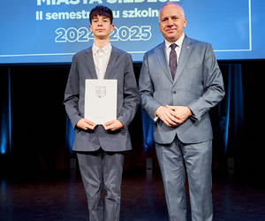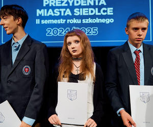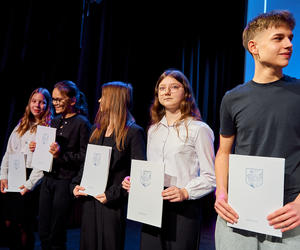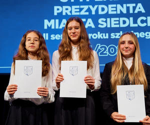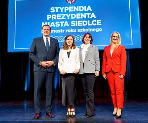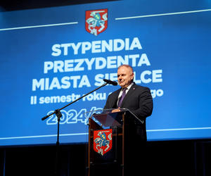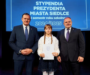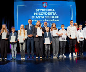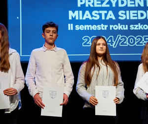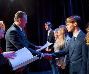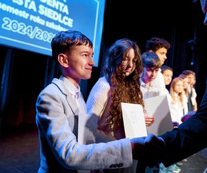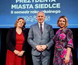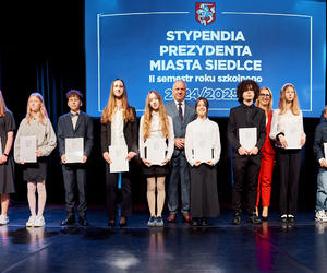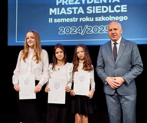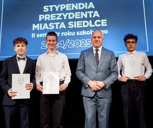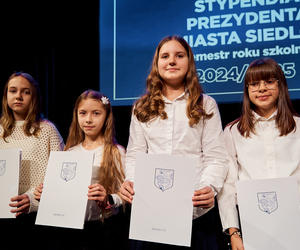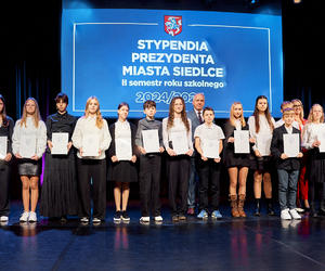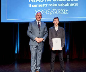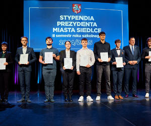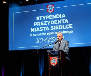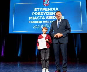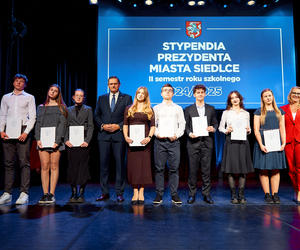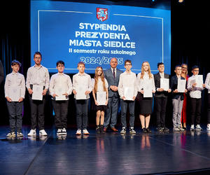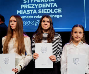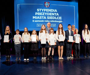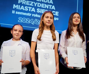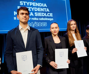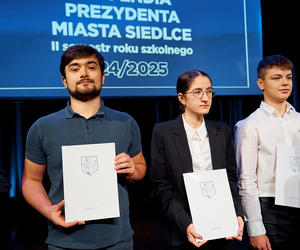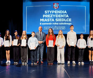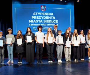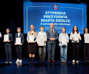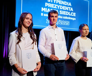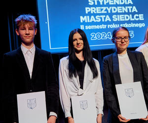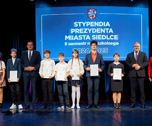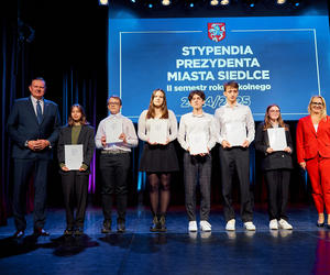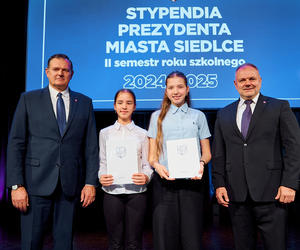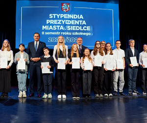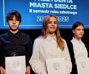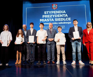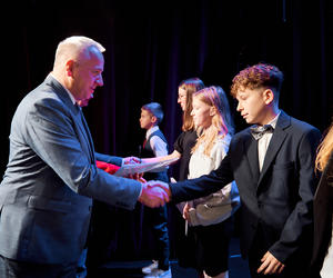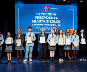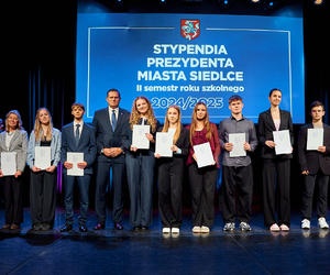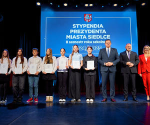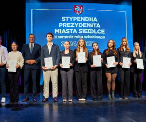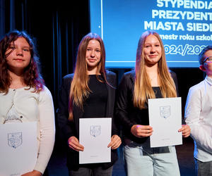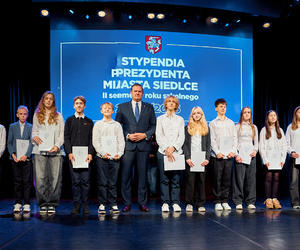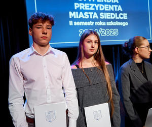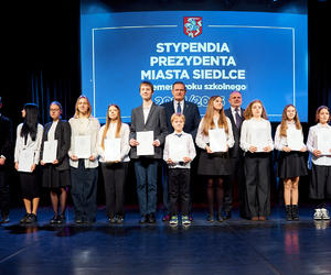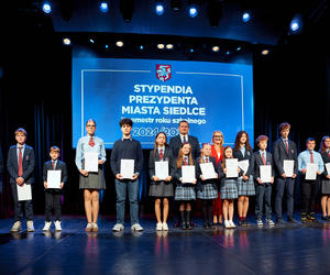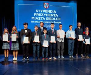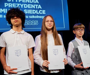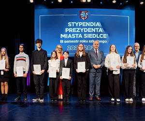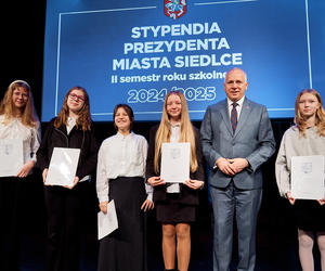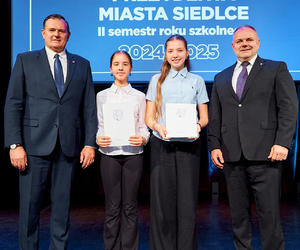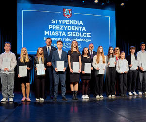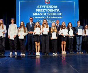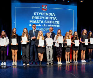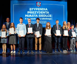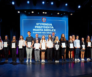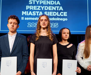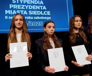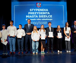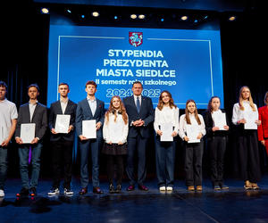 12 listopada 2025 r. w Sali Widowiskowej Podlasie MOK Prezydent Miasta Siedlce Tomasz Hapunowicz oraz Zastępca Prezydenta Maciej Nowak złożyli gratulacje oraz wręczyli listy gratulacyjne dla stypendystów z następujących szkół: