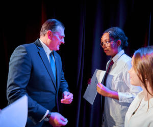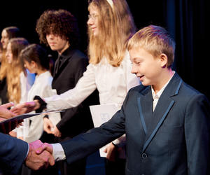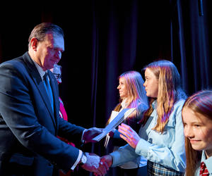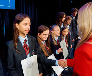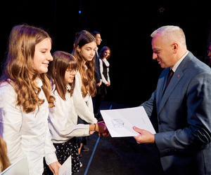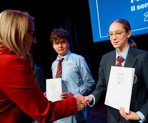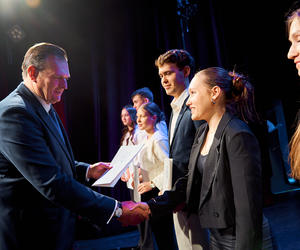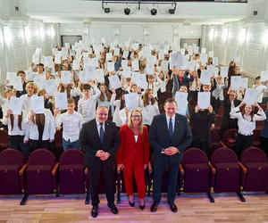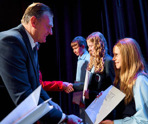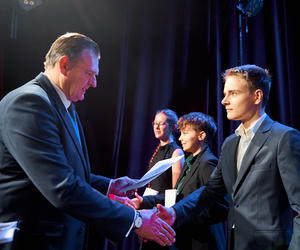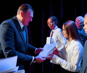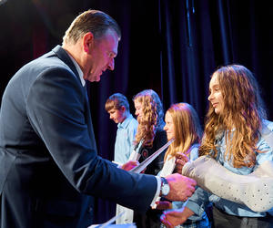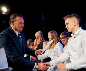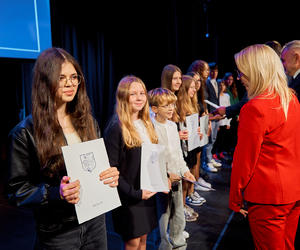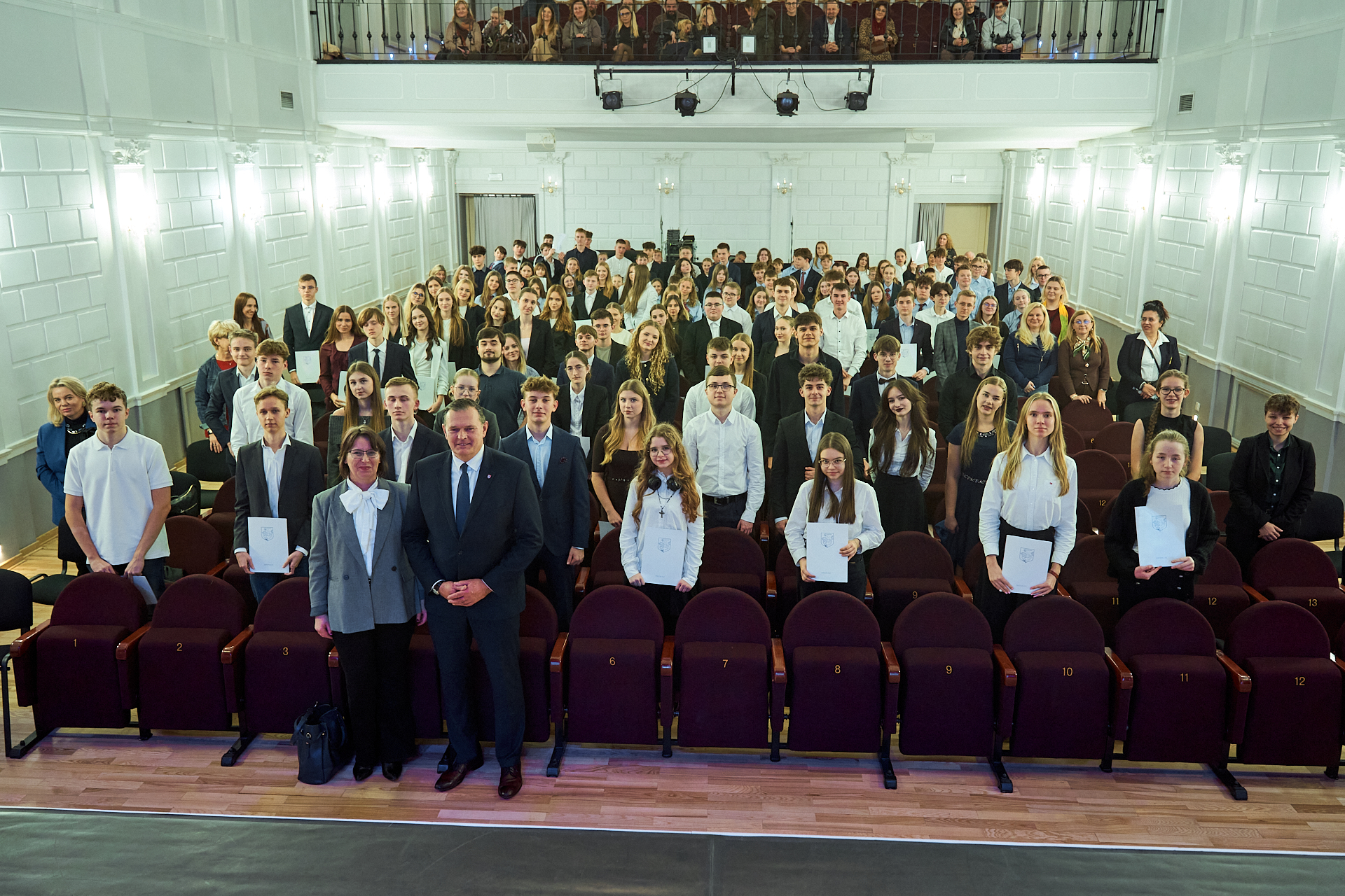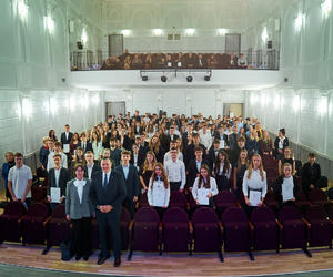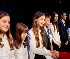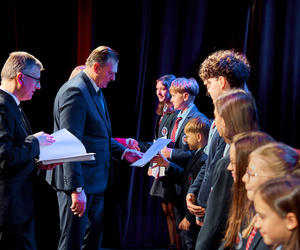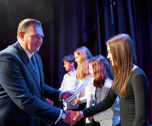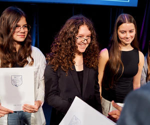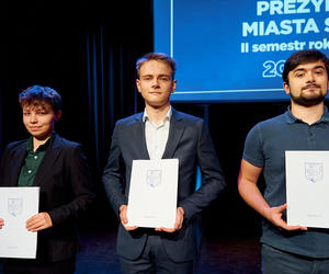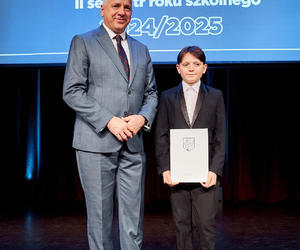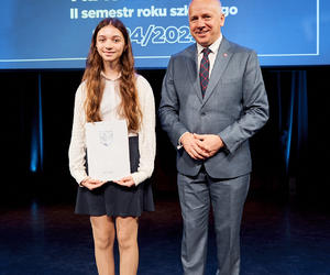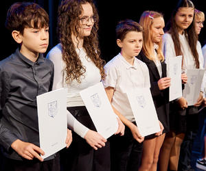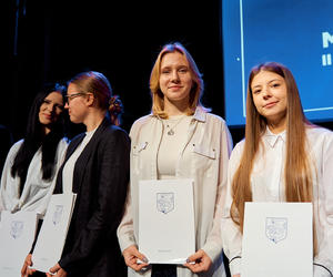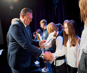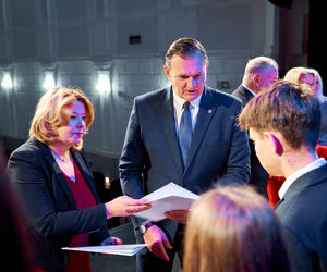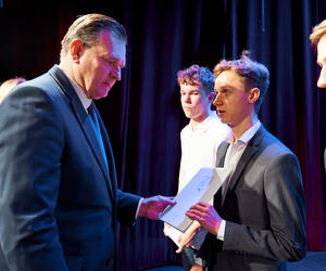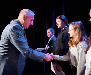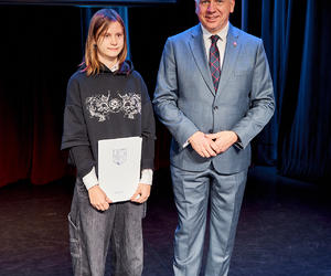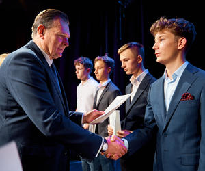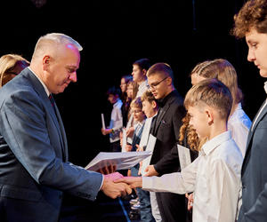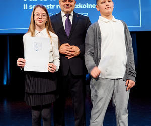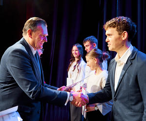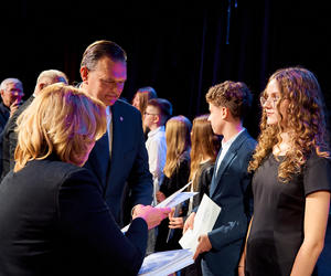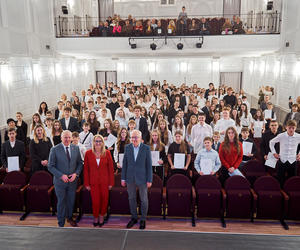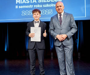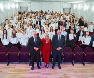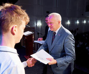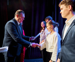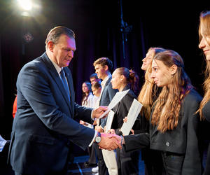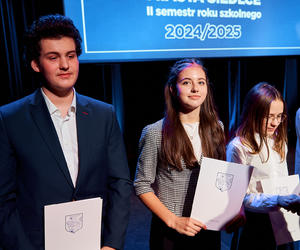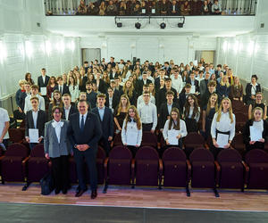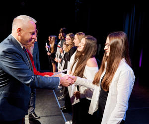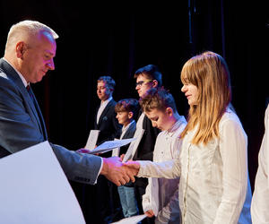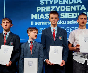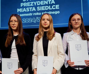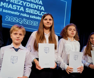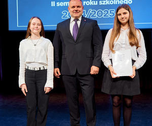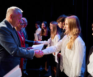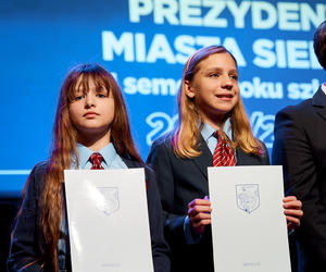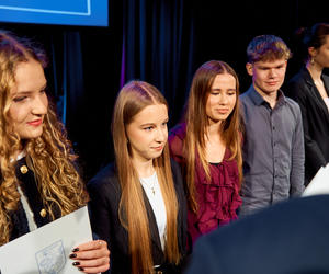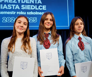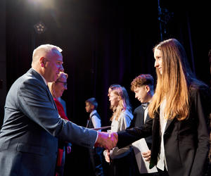 12 listopada 2025 r. w Sali Widowiskowej Podlasie MOK Prezydent Miasta Siedlce Tomasz Hapunowicz oraz Zastępca Prezydenta Maciej Nowak złożyli gratulacje oraz wręczyli listy gratulacyjne dla stypendystów z następujących szkół: