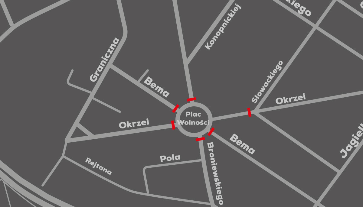 Niepodległości informujemy, że 11 listopada (wtorek) w godzinach od 9:00 do 14:30 rondo na Placu Wolności w Siedlcach oraz część ul. Okrzei będą zamknięte dla