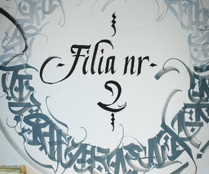 Charakteru i wyjątkowości Filii Bibliotecznej nr 2 nadała widoczna tuż za ladą biblioteczną kalligrafika. Jest to dzieło autorstwa Oskara Pieca, artysty specjalizującego się w calligrafitti. Nazwa tej techniki pochodzi od połączenia słów calligraphy + graffiti. Jest to nowoczesna forma sztuki, która łączy tradycyjną kaligrafię (sztukę pięknego pisania) z surową ekspresją graffiti i street artu. Dzieło przedstawia autorskie przekształcanie liter w abstrakcyjną kompozycję wizualną. Akcent twórczości wywodzącej się ze street artu komponuje się z nowym muralem powstałym niedaleko filii.