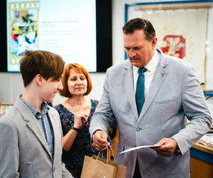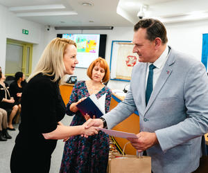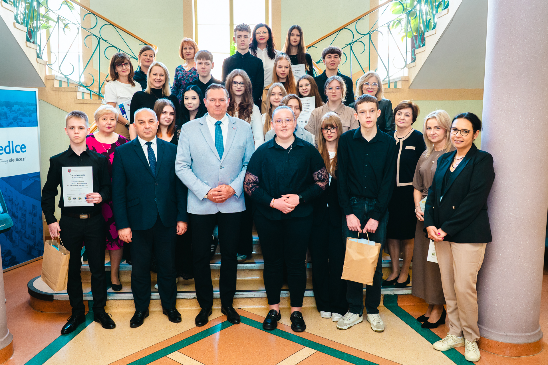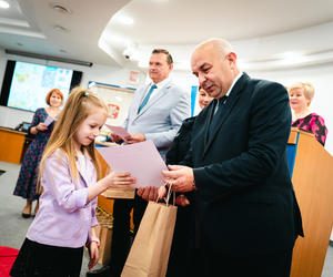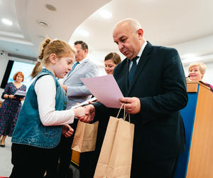 – Dzięki Wam zobaczyliśmy coś, czego my, dorośli, często już nie dostrzegamy. Wasze prace to nasza „instrukcja obsługi relacji” – mówiła prowadząca, zapraszając na scenę laureatów. Nagrody wręczali Zastępcy Prezydenta Miasta Siedlce: Dariusz Stopa oraz Maciej Nowak, a koperty z nazwiskami zwycięzców otwierały: Agnieszka Świerczewska (IPA Region Siedlce), Barbara Jastrzębska (KMP w Siedlcach) oraz Katarzyna Dobijańska (Pełnomocnik Prezydenta ds. rozwiązywania problemów uzależnień).