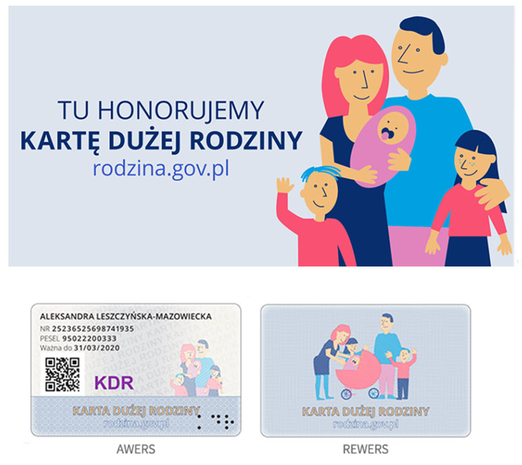 Miejsca, które oferują zniżki, są oznaczone specjalnym znakiem: „Tu honorujemy Kartę Dużej Rodziny”