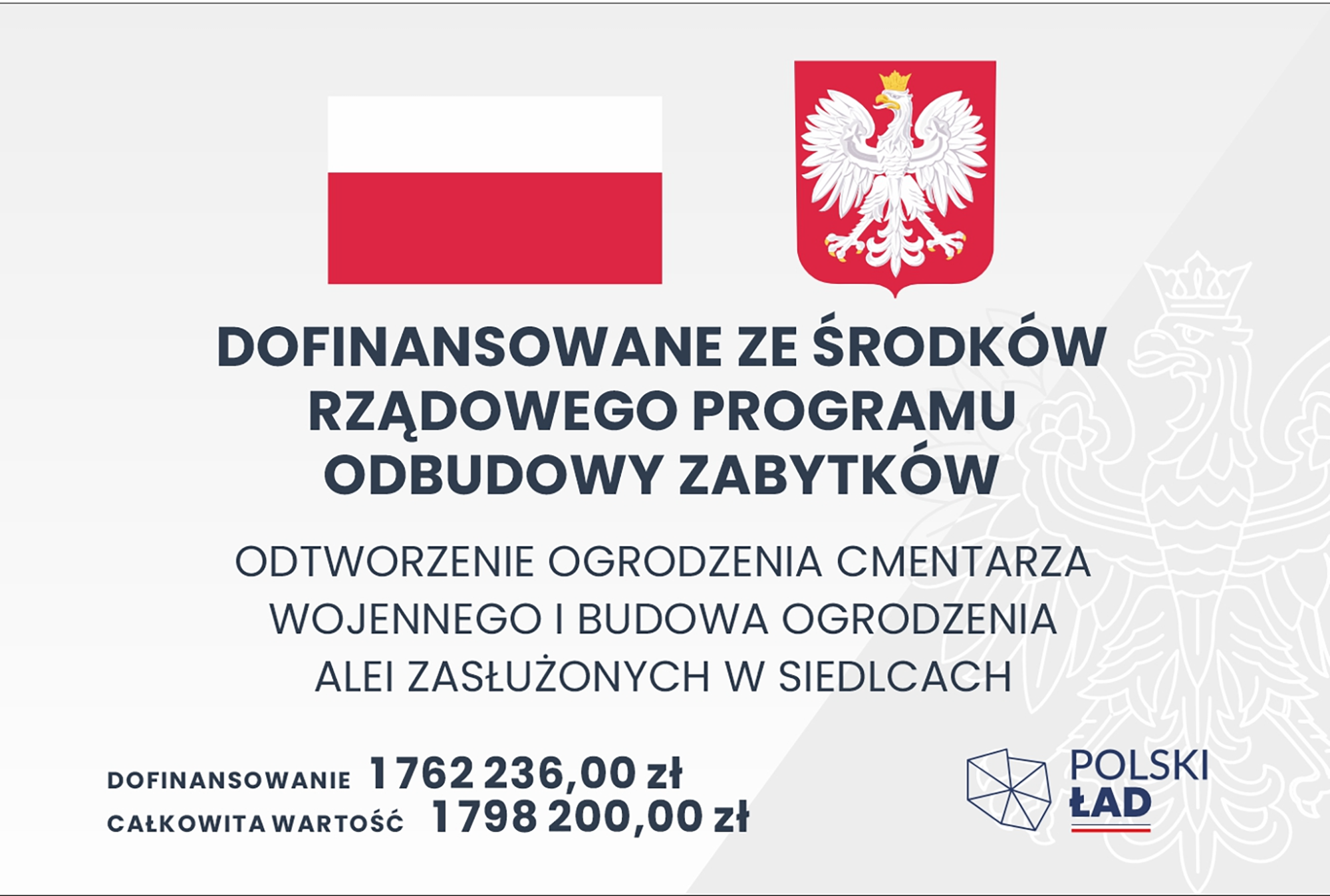 Miasto Siedlce realizuje program dofinansowany ze środków Budżetu Państwa przyjęty w oparciu o Uchwałę Nr 63 Rady Ministrów z dnia 19 czerwca 2024 r. Umowa pomiędzy Wojewodą Mazowieckim, Miastem Siedlce nr WRPS-IV.946.6.221.2025