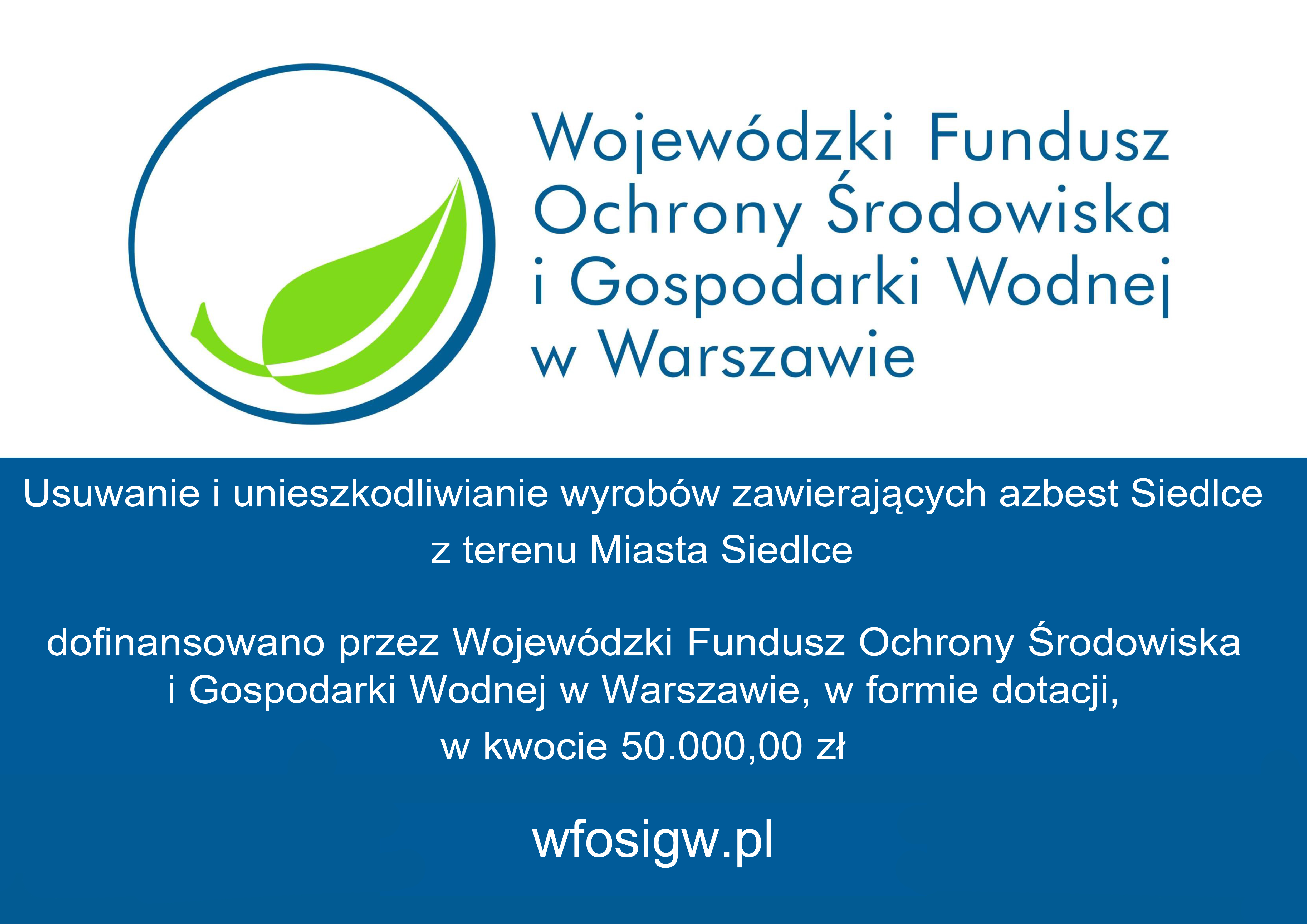 Informacja o uzyskanym w 2025 roku dofinansowaniu na realizację zadania pn. „Usuwanie i unieszkodliwianie wyrobów zawierających azbest z terenu Miasta Siedlce