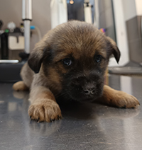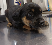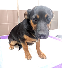 pies, mix, czarny podpalany, ok. 2 lata, brak chipa
