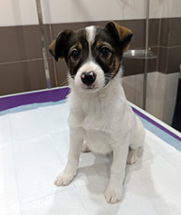 suka, mix, biało-brązowa, 4 miesiące, brak chipa