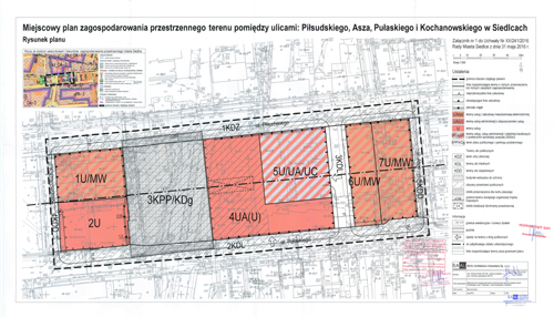Miejscowy plan zagospodarowania przestrzennego terenu pomiędzy ulicami: Piłsudskiego, Asza, Pułaskiego i Kochanowskiego w Siedlcach. |