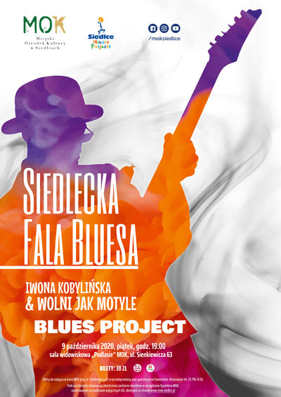 Siedlecka Fala Bluesa wpisała się już na stałe w kalendarz wydarzeń Miejskiego Ośrodka Kultury w Siedlcach. Co roku, jesienią, fani dobrej bluesowej muzyki mają okazję wysłuchać w sali „Podlasie” niezwykłych koncertów w wykonaniu siedleckich zespołów. Podczas tegorocznej edycji zagrają dwa z nich: Iwona Kobylińska & Wolni Jak Motyle oraz Blues Project.