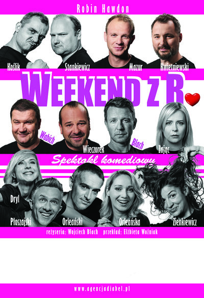 Mistrzowska farsa Robina Hawdona pełna znakomitych kreacji. Londyn. Lata dwudzieste. Clarice i Roger to małżeństwo szczęśliwe, spełnione, odnoszące sukcesy na każdej płaszczyźnie. Rozumieją się bez słów, nie widzą świata poza sobą. Lecz to tylko pozory. Przepełnieni są miłością, ale czy tylko do siebie? Okazuje się że „ta” miłość może być ogromnym problemem. Gdy nagle wyjazd służbowy Rogera zostaje odwołany, kompletnie psuje to szyki jego żonie. Mąż w domu to nie lada wyzwanie dla Clarice, która miała zaplanowany ten czas w najdrobniejszych szczegółach. Cała sytuacja wywołuje szereg nieporozumień i komplikacji przez co akcja nabiera zawrotnego tempa. Teraz Clarice musi wykazać się niebagatelną wyobraźnią i pomysłowością, żeby utrzymać swoją tajemnicę przed mężem do końca. „Weekend z R.” to komedia wielu zwrotów akcji, intryg i sekretów. Komizm sytuacyjny spektaklu gwarantuje dwie godziny świetnego humoru i rewelacyjnej zabawy.