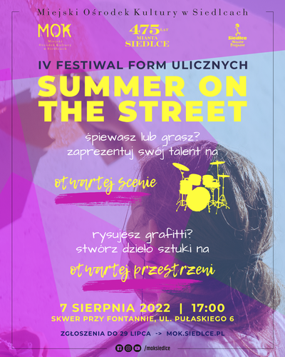 Śpiewasz, grasz lub malujesz graffiti? Zaprezentuj swój talent na naszej scenie! Zapraszamy do udziału w IV Festiwalu Form Ulicznych "Summer on the street" już 7 sierpnia!
