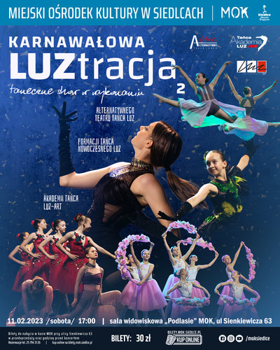 Karnawałowa LUZtracja to niezwykłe taneczne show w wykonaniu tancerzy Formacji Tańca Nowoczesnego LUZ, Alternatywnego Teatru Tańca LUZ i Akademii Tańca LUZ ART.