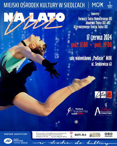 Zapraszamy na wyjątkowe taneczne show, pełne wzruszających, profesjonalnych prezentacji i barwnych kostiumów. Wystąpią tancerze z grup zaawansowanych Formacji Tańca Nowoczesnego LUZ oraz najmłodsi adepci z Akademii Tańca LUZ ART. Podczas trzech koncertów publiczność będzie miała okazję zobaczyć wyjątkowe choreografie przygotowane przez Joannę Woszczyńską, Katarzynę Popławską, Margaritę Orzełowską i Natalię Jarząb.Bilety w cenie 20 zł do nabycia online na bilety.mok.siedlce.pl i w kasie MOK, ul. Sienkiewicza 63, od poniedziałku do piątku w godz. 9:00-15:00 oraz godzinę przed koncertem. Rezerwacje miej