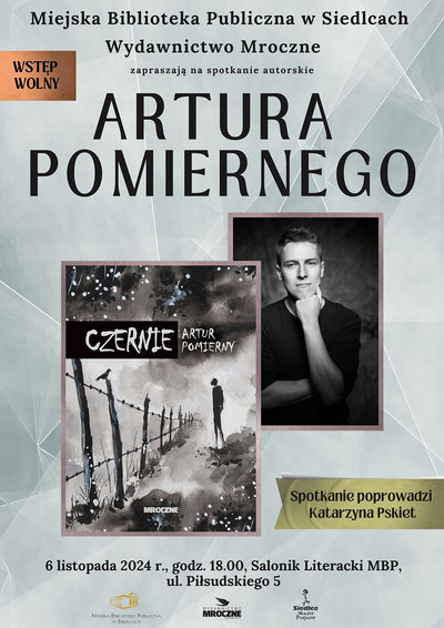 Miejska Biblioteka Publiczna w Siedlcachwraz z Wydawnictwem Mroczne zapraszają na spotkanie autorskie Artura Pomiernego oraz promocję jego książki pt. „Czernie”.