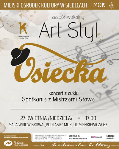 Nie sposób wyśpiewać wszystkie wspaniałe utwory Agnieszki Osieckiej, gdyż autorka w swoim dorobku ma ich ponad 2000. Wokalistki z zespołu Art Styl zaprezentują 14 wybranych. Będą to wykonania solowe, duety oraz zespołowe. Zapewniamy, że koncert będzie prawdziwą muzyczną podróżą w krainę słowa, które niesie przekaz, analizę rzeczywistości, ocenę czasów oraz nadzieję, że to co ważne w życiu człowieka, może on ochronić miłością i przyjaźnią.