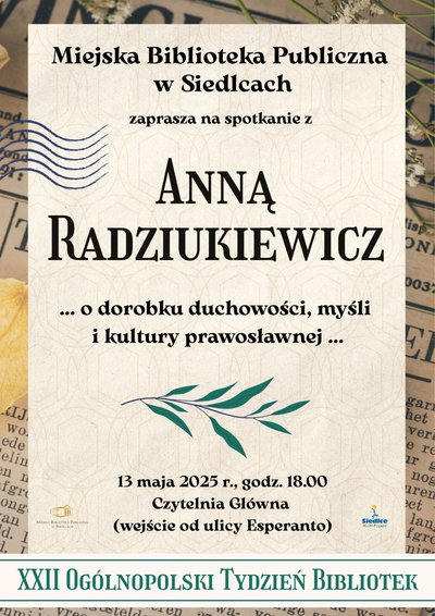 Tematem spotkania będzie duchowość, myśl i kultura prawosławna, a punktem wyjścia do rozmowy stanie się najnowsza książka autorki „Słowo w niewoli i inne szkice”.