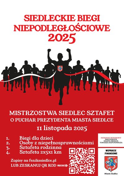 Siedlecki Okręgowy Związek Lekkiej Atletyki zaprasza na wydarzenie biegowe skierowane do amatorów tej dyscypliny sportu - Mistrzostwa Siedlec Sztafet o Puchar Prezydenta Miasta Siedlce, które odbędą się 11 listopada 2025 roku.