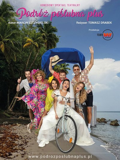 Po sukcesie spektaklu pt. „Wieczór panieński plus”, autor Marcin Szczygielski napisał najnowszą komedię pt. „Podróż poślubna plus”, będącą kontynuacją losów bohaterów „Wieczoru..”. Przed bohaterami nowe, niekoniecznie usłane różami życie. Jednak nim ono się rozpocznie, pora na miłość i upojny miesiąc miodowy. W podróż poślubną na egzotyczną wyspę wyruszają dwie młode pary plus jedna niedoszła panna młoda, której przyjaciele nie mają serca zostawić samej w domu. Jednak nic nie idzie zgodnie z planem. Zamiast do raju, bohaterowie trafiają prosto w oko cyklonu, w którym muszą zmierzyć z huraganem, gangsterami i niemniej groźną szefową hotelu… A to zaledwie początek ich problemów! „Podróż poślubna plus” na pewno przypadnie Wam do gustu, podobnie jak „Wieczór panieński plus”!