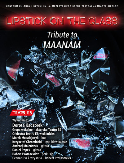 „Lipstick on the glass - Tribute to Maanam” to widowisko muzyczne prezentujące twórczość hitowego polskiego zespołu, którego liderka odeszła przedwczesną śmiercią po długiej chorobie. W koncercie usłyszeć będzie można znane wszystkim przeboje takie jak „Boskie Buenos”, „Cykady na Cykladach”, „Lipstick on the glass” i wiele, wiele innych, przy których bawiły się pokolenia. Kompozycje Marka Jackowskiego z tekstami Kory Jackowskiej w aranżacjach oddających klimat ubiegłego stulecia zaprezentuje Orkiestra Teatru ES w składzie: Marek Matwiejczyk, Krzysztof Chromiński, Andrzej Maleńczuk, Daniel Popek i Robert Protasewicz oraz Dorota Kaczorek, której elektryzujący wokal przeniesie nas w czasy kiedy Maanam święcił tryumfy na scenach i estradach w całym kraju. Solistce towarzyszyć będzie grupa wokalno-aktorska Teatru ES w specjalnie zaaranżowanych scenkach teatralnych. Całość koncertu dopełniają: ciekawa scenografia, dynamiczne wizualizacje i materiały filmowe ukazujące prywatną stronę życia Kory.