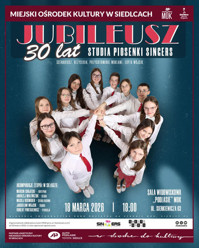 Trzy dekady, tysiące wyśpiewanych nut i cała masa muzycznych przyjaźni - Studio Piosenki Singers świętuje 30-lecie działalności! Od momentu założenia zespołu z inicjatywy Zbigniewa Panka, a następnie pod wieloletnim kierownictwem Edyty Wójcik, Studio stało się kuźnią talentów i wizytówką kulturalną naszego miasta.