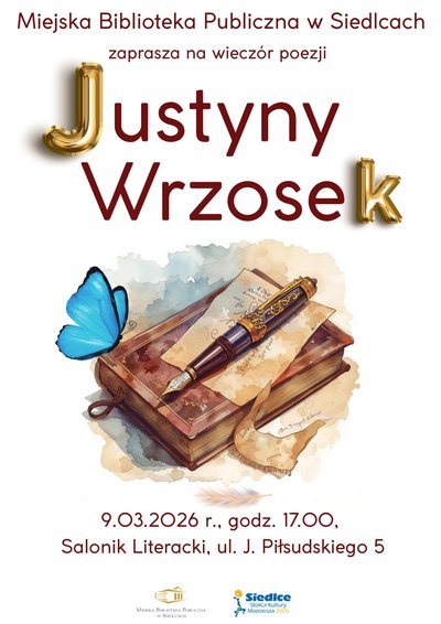 9 marca 2026 r., godz.17.00, Salonik Literacki, wejście od ulicy Piłsudskiego. Wstęp wolny!