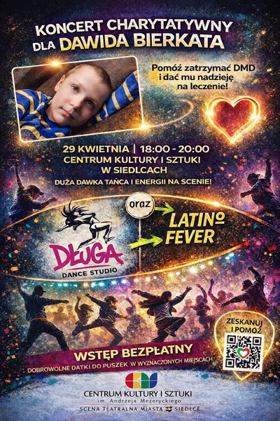 Już 29 kwietnia Scena Teatralna Miasta Siedlce wypełni się tańcem i dobrą energią, a wszystko to w szczytnym celu – aby wesprzeć Dawida w jego walce o zdrowie.