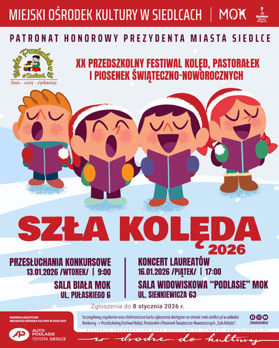 13 stycznia 2026 r., godz. 9:00 Koncert Laureatów: Sala widowiskowa “Podlasie” MOK, ul. Sienkiewicza 63, Siedlce